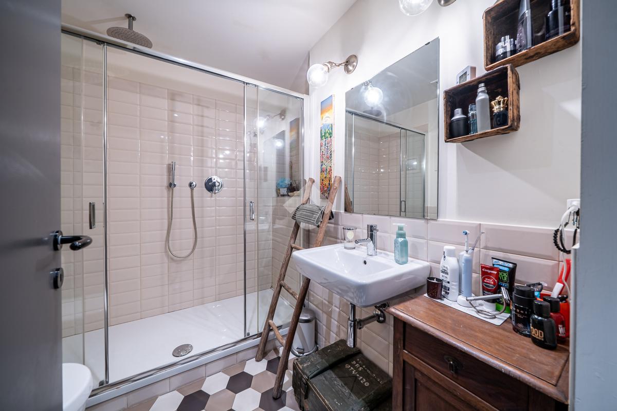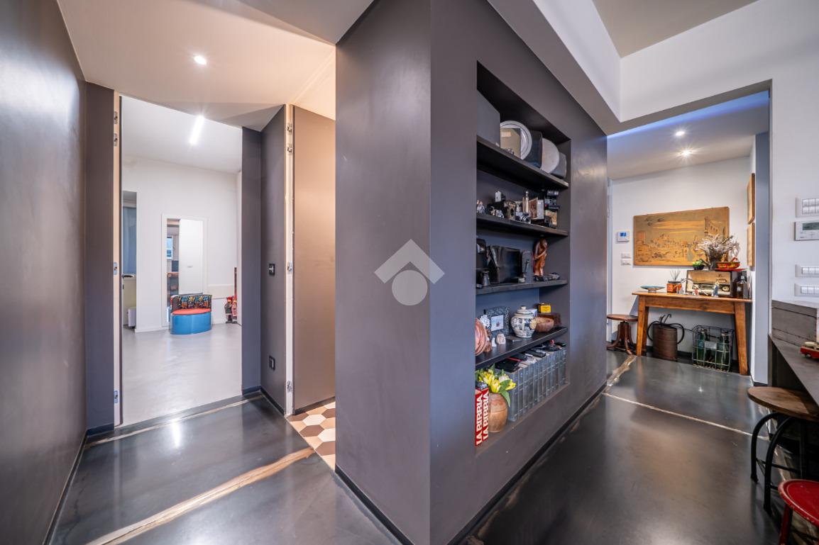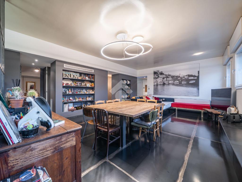 Situato al piano terra di un edificio ad uso residenziale, questo immobile è stato ristrutturato combinando il fascino storico del palazzo con uno stile industriale moderno all'interno.