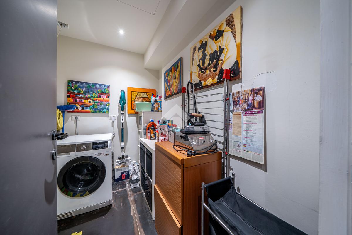 L'appartamento è composto da quattro locali, tra cui due camere da letto e due bagni, oltre all'ampia e luminosa zona giorno con angolo cottura. Gli interni presentano pavimenti in ferro e resina, zanzariere alle finestre e infissi con vetrocamera, garantendo comfort e isolamento.
